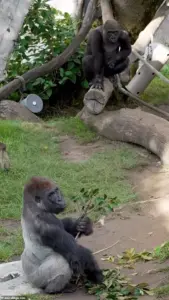 Zoo officials emphasized that such behavior, while startling to witness, is not uncommon for gorillas of his age and sex. ‘It is common for male gorillas, especially in adolescence, to express these types of behaviors,’ a zoo spokesperson said in a statement. ‘Bursts of energy, charging, dragging items, or running sideways are all natural for a young male.’