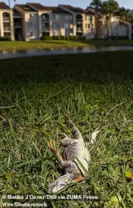 The phenomenon, triggered by an uncharacteristically harsh cold snap, left the invasive reptiles in a state of torpor, their bodies seemingly suspended in time as they slumped lifelessly to the ground.