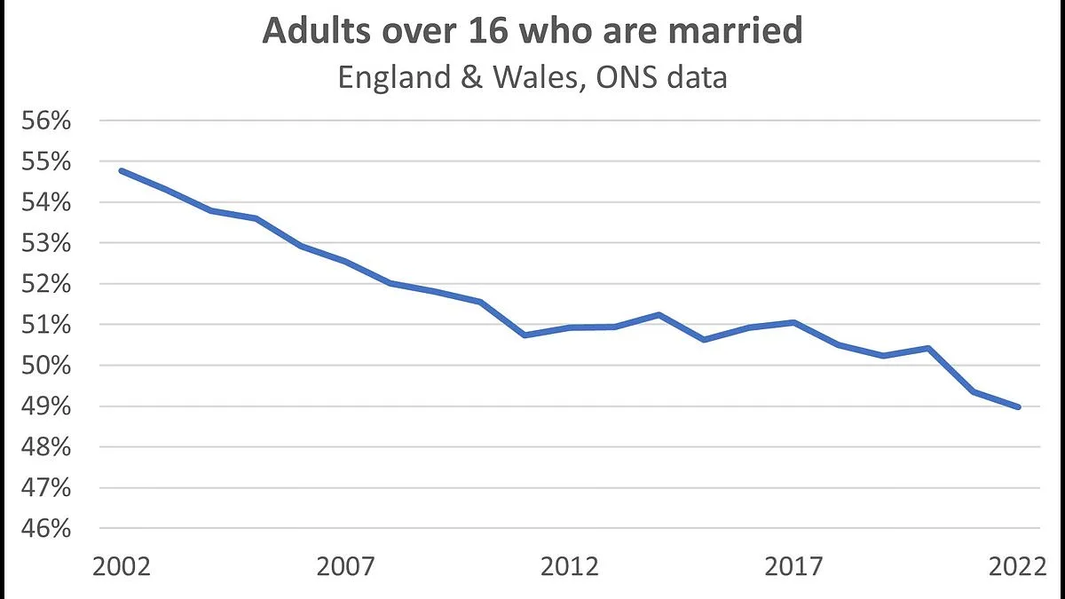 The Marriage Foundation warns that this decline in matrimony is deeply troubling. They noted that marriage rates have plummeted by nearly a third since the 1960s. The charity expressed concerns regarding stability and child outcomes. "We already have the highest level of family breakdown in recorded UK history. Nearly half of all teenagers are not living with both natural parents," the group stated.